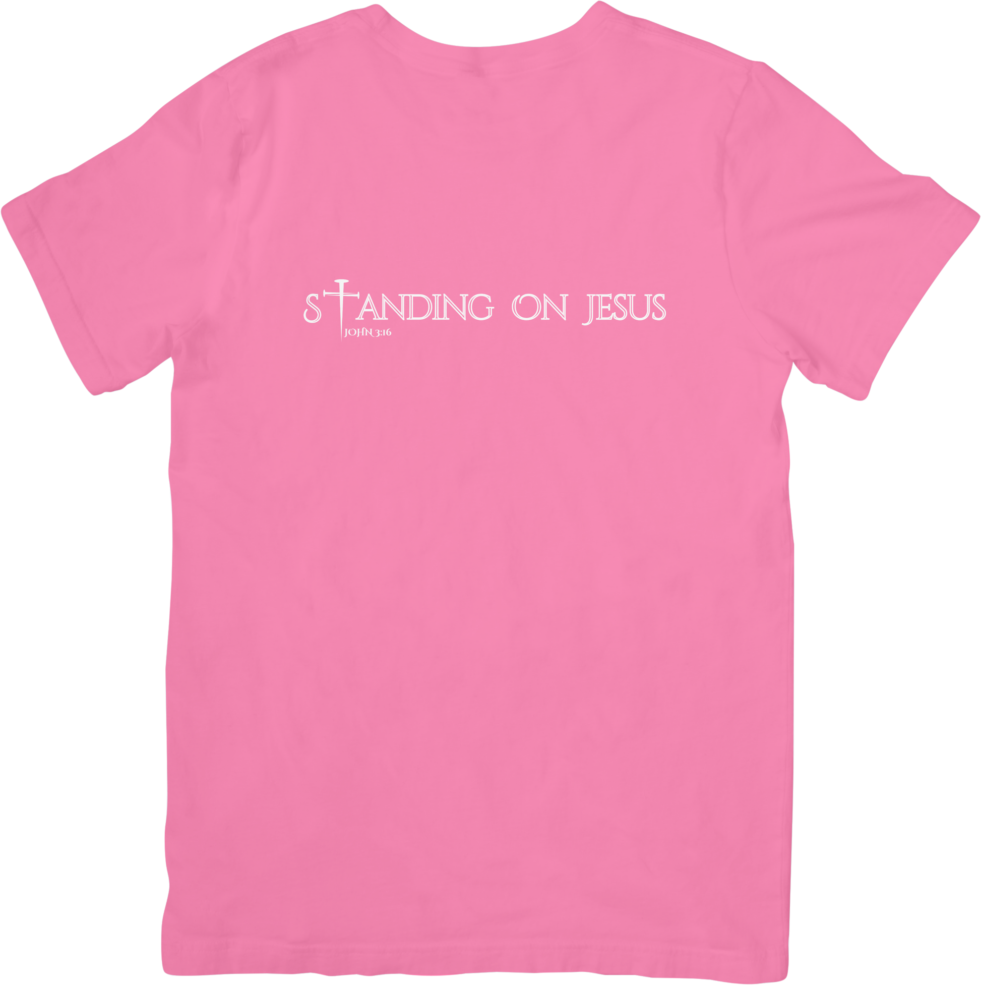 STANDING ON JESUS (JOHN 3:16)- Safety Pink and White